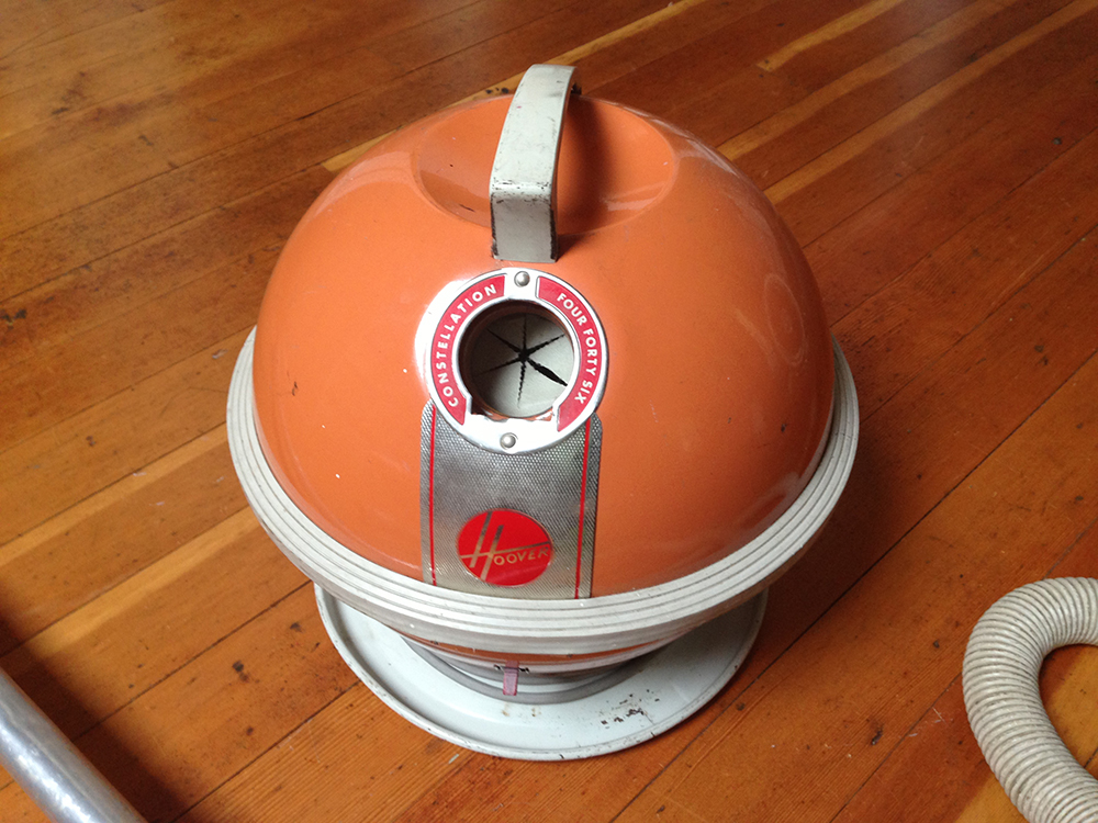 Below, my own Hoover Constellation Four Forty Six, inherited from a great aunt and beloved by me. It is an also object of desire for my friend Anakana, a sort of high-level vacuum appreciater. Seeing the Russian Saturn, though, has made the Hoover Constellation shine paler in the vacuum firmament.