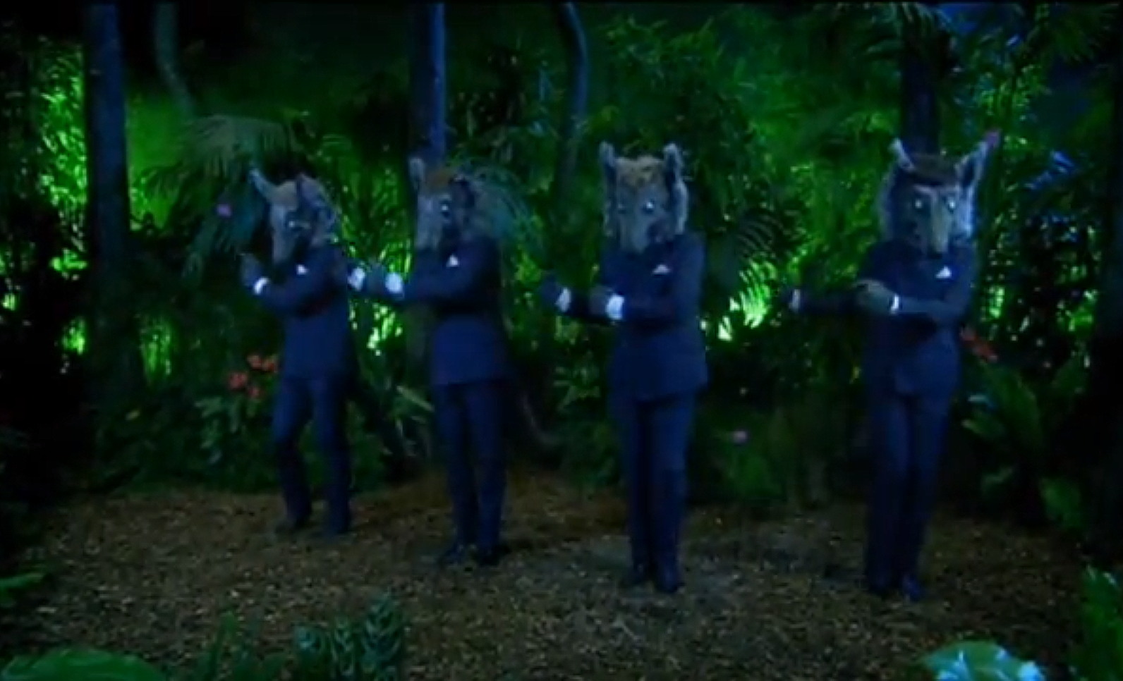 OK, I don’t mind quotation, reference, homage and what have you. But let’s just point out that the 2013 song “The Fox,” also known as “What Does the Fox Say” by Norwegian comedy outfit Ylvis, pretty obviously owes a debt to the 2003 “Mod Wolves” sequence from UK comedy TV series The Mighty Boosh.